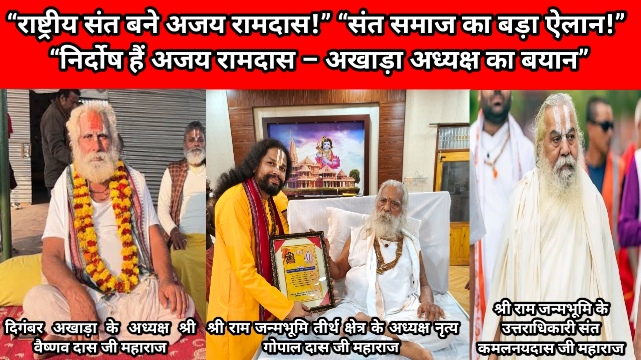 सिर्फ इतना ही नहीं, देशभर में उठ रही गलतफहमियों को दूर करने और सनातन संत परंपरा की गरिमा बचाने के लिए श्री राम जन्मभूमि तीर्थ क्षेत्र के अध्यक्ष अनन्त विभूषित वैष्णव कुलभूषन श्री श्री 1008 महत नृत्य गोपालदासजी महाराज द्वारा महामण्डलेश्वर स्वामी अजय रामदास को ‘राष्ट्रीय संत’ का दर्जा प्रदान किया गया है।